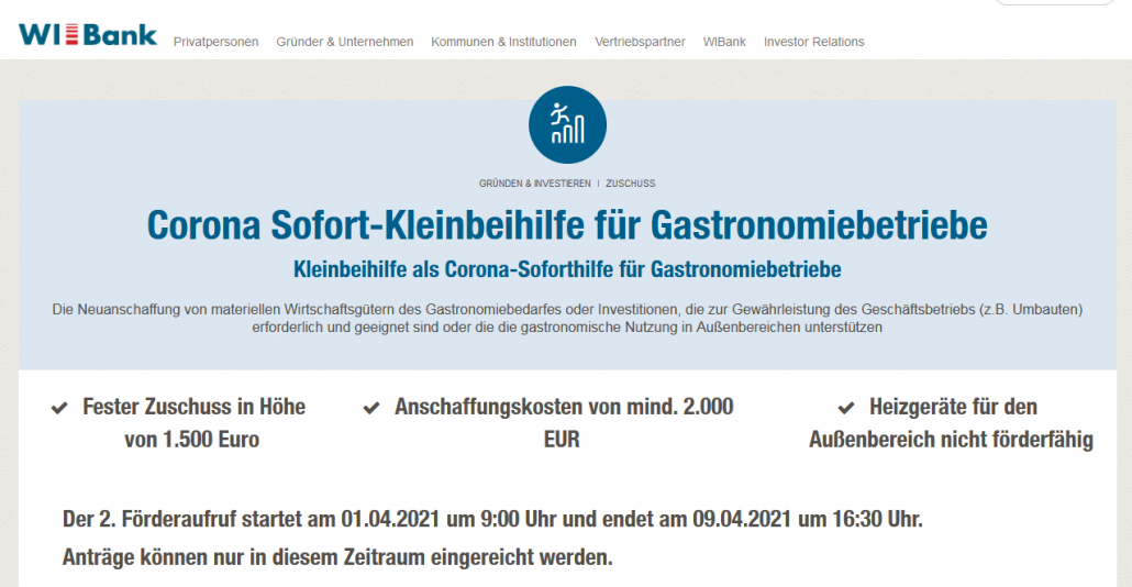 Corona Sofort-Kleinbeihilfe für Gastronomiebetriebe